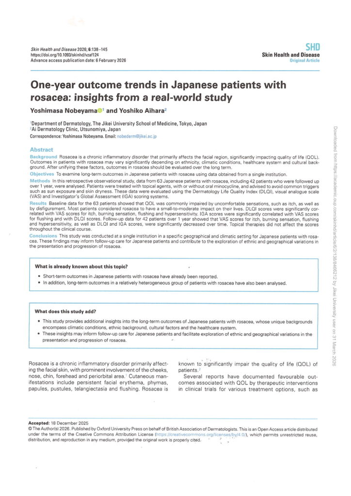 2025年10月6日 院長の研究論文が酒皶・敏感肌に掲載されました
