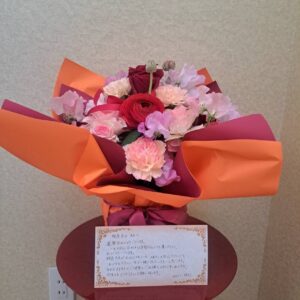 写真は還暦のお祝いにスタッフから頂いたお花です。